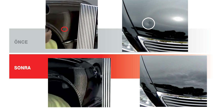 Dış darbeler sonucu araç metal yüzeyi üzerinde meydana gelen 5 cm çapına kadar kaporta göçüklerinin özel aletlerle aracın orijinal boyasına zarar vermeden